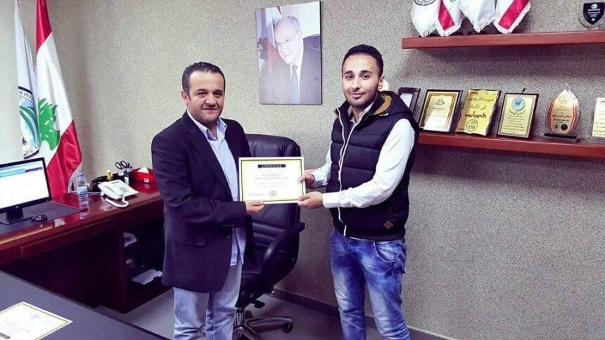 The Palestinian Syrian student “Ahmad Walid Mustafa” achieved the first position in Lebanese International University (LIU) with 4/4 grade, Ahmad had been displaced from Syria just like the other 45,000 refugees in Lebanon after the beginning of the war in Syria.