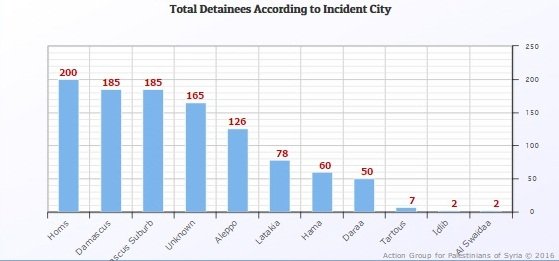 The AGPS has taken on the responsibility of documenting all cases of arrest, the process which encounters huge difficulties either in approaching the cases in the field or in validating them, given that the families of detainees most likely to be scared of talking about their sons to media or human rights institutions and not willing to get exposed to “regime’s revenge”as they say. However, the AGPS through its correspondents’ network and testimonies of recently-released prisoners managed to document 1061 arrestees so far, from almost all the Palestinian Camps and compounds in Syria, as follows: