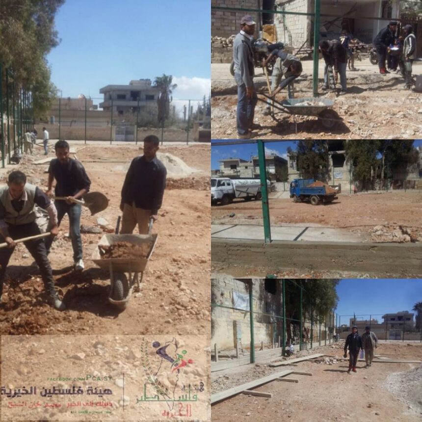 The Palestine Charity Association has finished the second phase of its project aiming to turn the place of UNRWA’s destroyed school into a football field, the project started on 29 January 2016 on the ground of UNRWA’s school that had been completely destroyed by explosive barrels dropped by the Syrian warplanes.