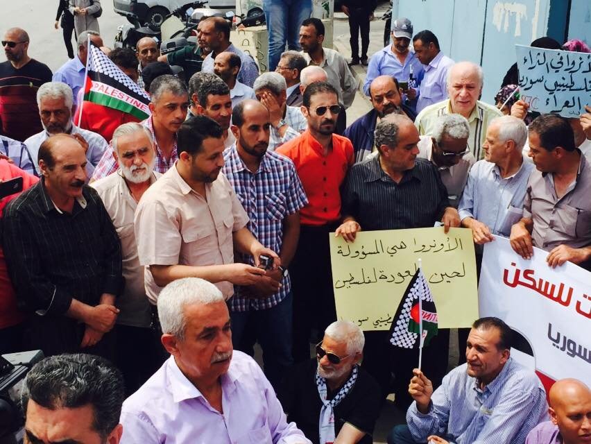 Dozens of Palestinian Syrian refugees in Lebanon organized a sit- in  in front of the UNRWA’s headquarter in Beirut, expressing anger regarding UNRWA’s policy, since UNRWA decreased its services and aid, especially the rent allowances.