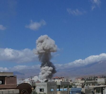 In Damascus suburb, where Russian and Syrian warplanes launched violent strikes targeting the outskirts of Khan Al Shieh camp and the surrounding towns and farms. The shelling resulted in only material damage, and a state of terror and panic among residents for fear of being targeted again.