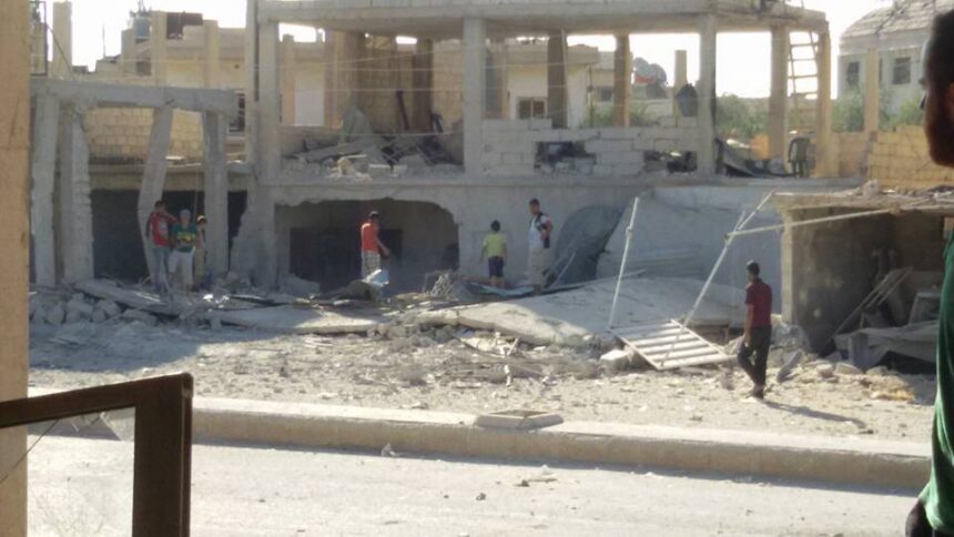 Russian warplanes implemented air strikes that targeted Khan AL Shieh camp in Damascus suburb. The shelling targeted the old market area near Alhuda mosque in the middle of the camp this morning; the shelling resulted in the death of Laith Al Khaldi and two injuries, in addition to the massive destruction of civilians’ houses and shops.