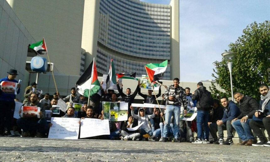 In Vienna, dozens of Palestinian refugees have organized a solidarity sit-in with Khan Al- Sheih in front of UN office calling to stop shelling the camp.