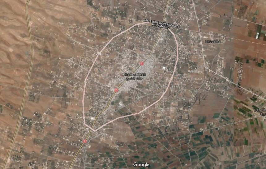 Fighter jets, believed to be Russian, targeted at predawn time on Friday Khan Al-Shih’s surrounding ranches with six airstrikes in a raw, sparking a state of panic among refugee children and women.