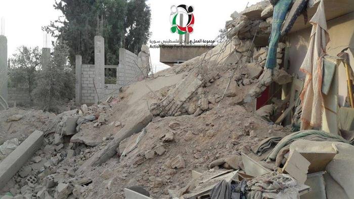 The Syrian and Russian fighter aircrafts at dawn Wednesday struck the eastern neighborhood of Khan Al-Sheih Camp for Palestinian refugees, in Western Damascus outskirts, with vacuum missiles, resulting in remarkable material damage.