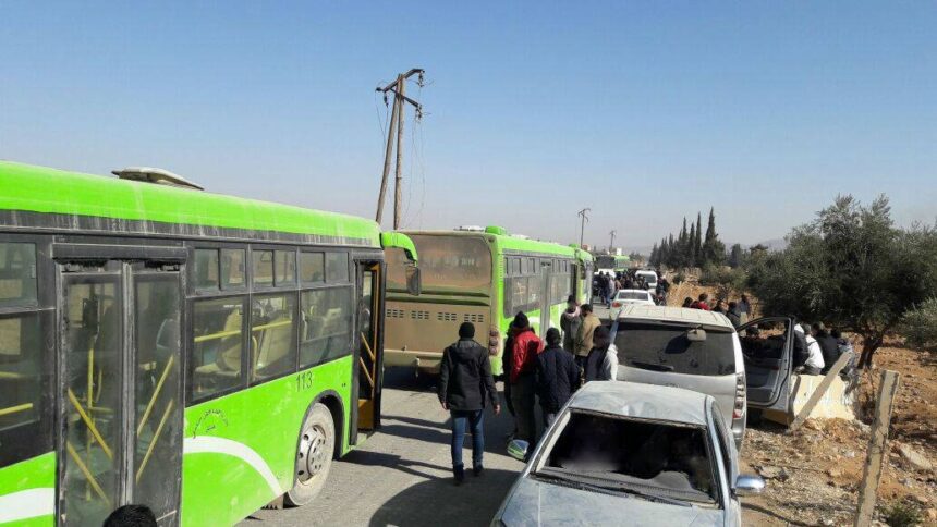 The Syrian government dispatched buses to transfer civilians from Khan Al-Sheih to the adjacent Nestlé Factory pending their transfer to Idlib.