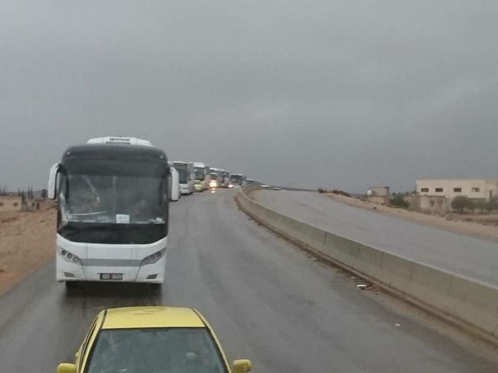 AGPS news correspondent said 86 buses evacuated hundreds of displaced families, taking shelter at Khan Al-Sheih, to Idlib after a deal with the government forces and opposition outfits was put into effect.