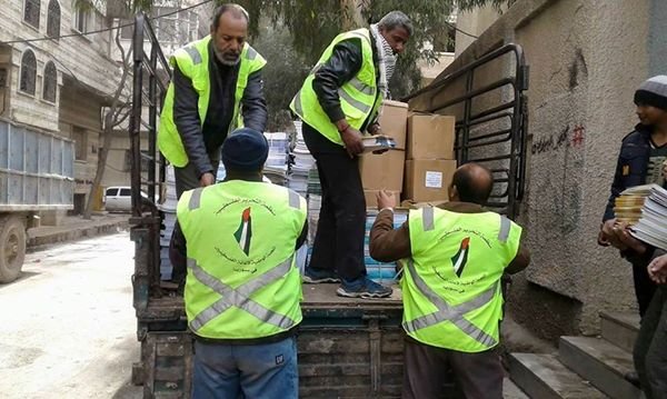 The National Committee for the Relief of the Palestinian People on January 25, 2017, handed out textbooks to students displaced from Yarmouk to Yalda town.