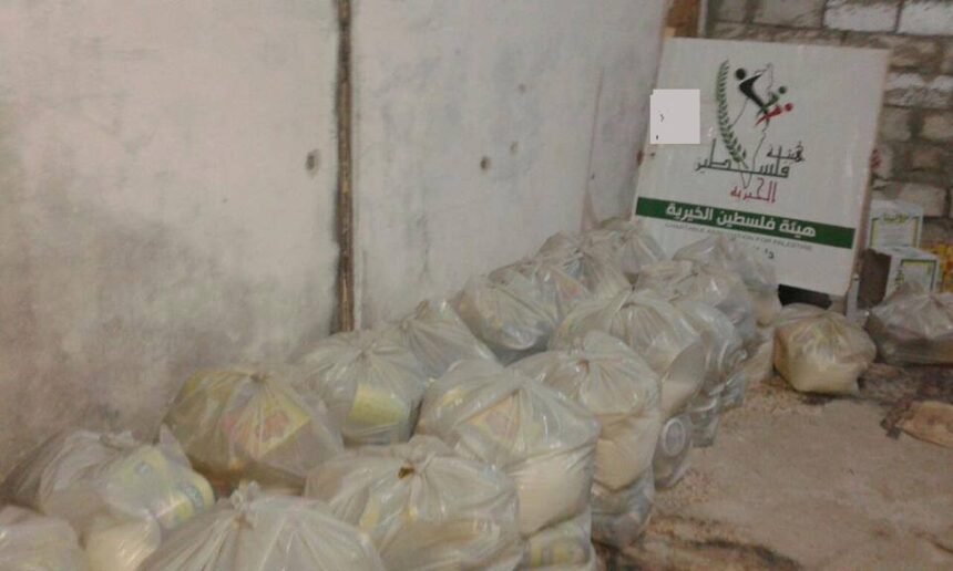 The Palestine Charity Commission in the southern Syrian town of AlMuzeireeb distributed food boxes to 150 families.