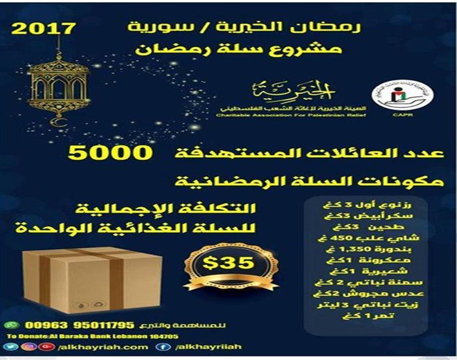 The Palestine Charity Commission embarked on a so-called “Ramadan Basket”campaign for the Palestinians of Syria.