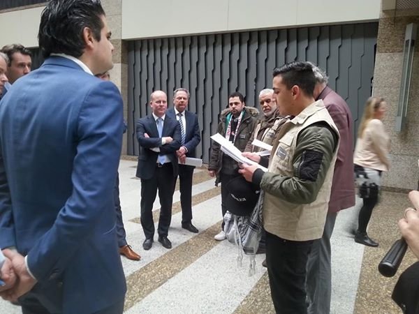 The sit-in contained delivering a memorandum to the Foreign affairs committee of the Dutch parliament, included a number of demands that aim to lobby towards taking the Yarmouk siege away and securing safe shelters to the Palestinians of Syria. In their turn, a number of Parliament members promised that the demands will be discussed in the coming Dutch parliament meeting. The sit -in contained a photo gallery that expresses the tragedy that the camps’ residents suffer from specially the Yarmouk camp which is the capital of Diaspora and the biggest camp. It is noted that the Yarmouk siege led to 172 victims due to hunger.