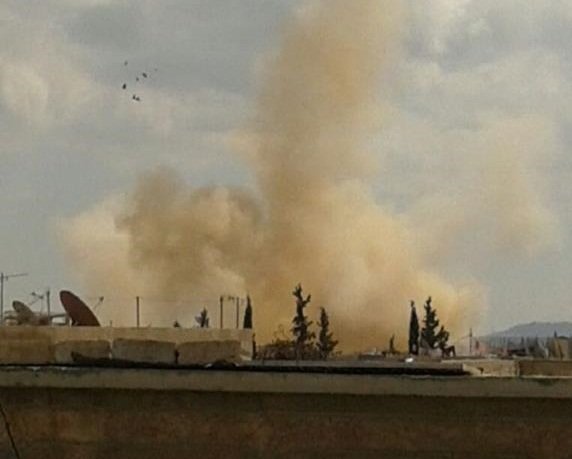 Warplanes Target the Vicinity of Khan Al Shieh Camp with a Number of Explosive Barrels.