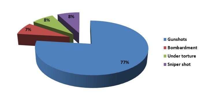 AGPS’s Monitoring and Documentation Team announced that 13 Palestinian refugees died in January 2018. 10 people died of gunshot wounds, one refugee died of a sniper shot, another person died due to torture in the Syrian regime prisons and one refugee died as a result of the bombardments.