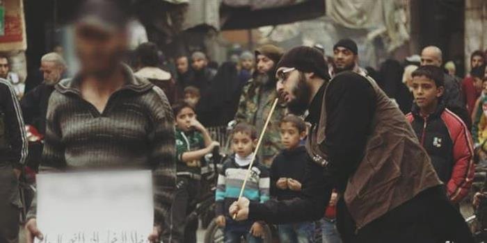 ISIS whipped a resident of Yarmouk camp, for possessing tobacco and smuggling it from Yelda to inside Yarmouk camp. On its official website, ISIS published pictures showing its members while whipping the accused man in front of the public, according to their description, while he carried a poster saying “Entry of smoke to the land of the Islamic State in south Damascus.”
