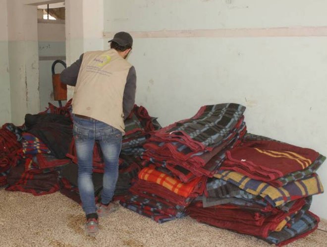 Jafra Foundation for Relief and Development distributed relief aid (food baskets) and in-kind assistance (brushes and sleep blankets) to the families displaced from Yarmouk camp to the neighboring towns of Yelda, Babilla and Beit Sahm, in south Damascus. The families were forced to leave their homes after ISIS took control over the camp in early April 2015, and fled recently to the south as a result of the violent bombardments that targeted their camp, in addition to the ongoing fighting between ISIS and Hayat Tahrir Al-Sham, and ISIS and the Syrian regime forces and its affiliated Palestinian factions.