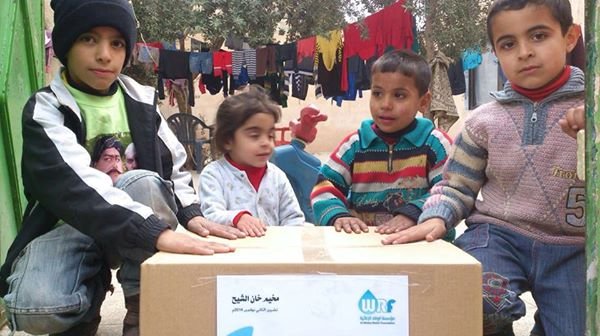 Al Wafaa Foundation distributes aids at Khan AL Sheih camp in Damascus suburb.