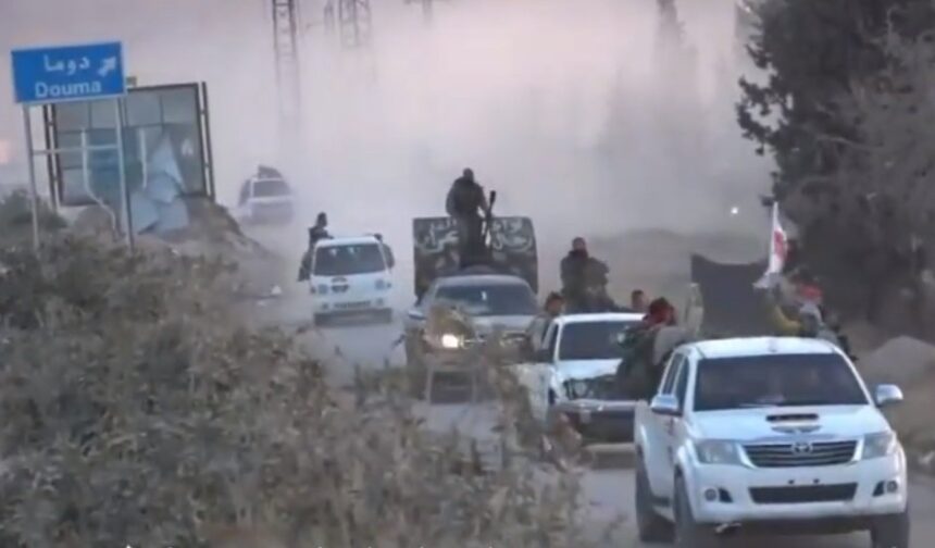 The pictures show military frames equipped with medium and heavy weapons with the slogan “Liwaa Al-Quds” written on them, where its members bombard the town of Duma, in which Jaish Al-Islam is based, which is counted on the armed Syrian opposition.Â