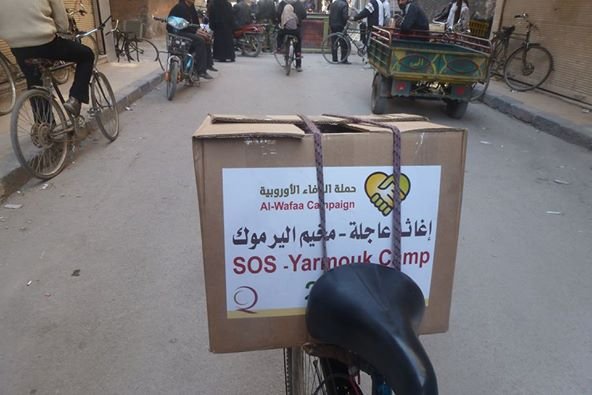 Al Wafaa European Campaign continues distributing the food aid to the residents of the Yarmouk camp at the new point in Palestine Street without any obstacles or problems. The Syrian Security forces released the Palestinian refugee FawzeyyaSalama after being arrested for one day from the aids distribution point.