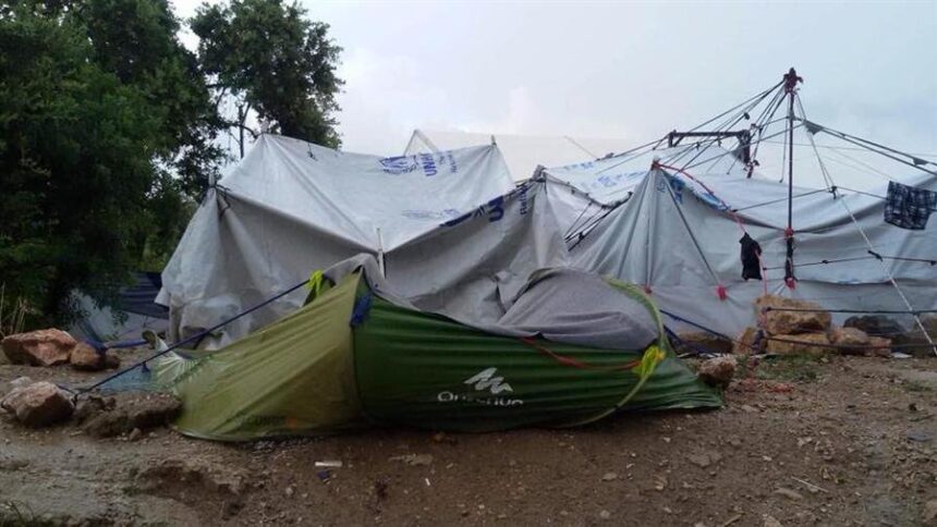 In Greece, the rains which fell on the 16th of June flooded the tents of the Palestinian-Syrian and Syrian refugees in Vial camp, on the Greek Island of Chios. Our correspondent in the camp noted that the water raided the tents of the residents of Vial camp, forcing them to leave their tents and sleeping on the ground, adding that the water flooded the tents and their components, which is dangerous for the health of the women, children and elderly people in the camp, as a result of the extremely cold weather.