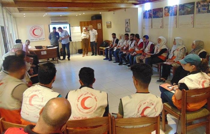 In Damascus, the Palestinian Red Crescent, in cooperation with the International Committee of the Red Cross began a course on the management of corpses and the dangers of exposure to weapons waste for non-specialists, in the lecture hall at the medical center of Jaffa Medical Center, in Al-Mezzah.