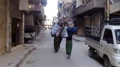 A video released by a resident shows a group of thieves leaving Yarmouk Camp while carrying equipment belonging to displaced families.