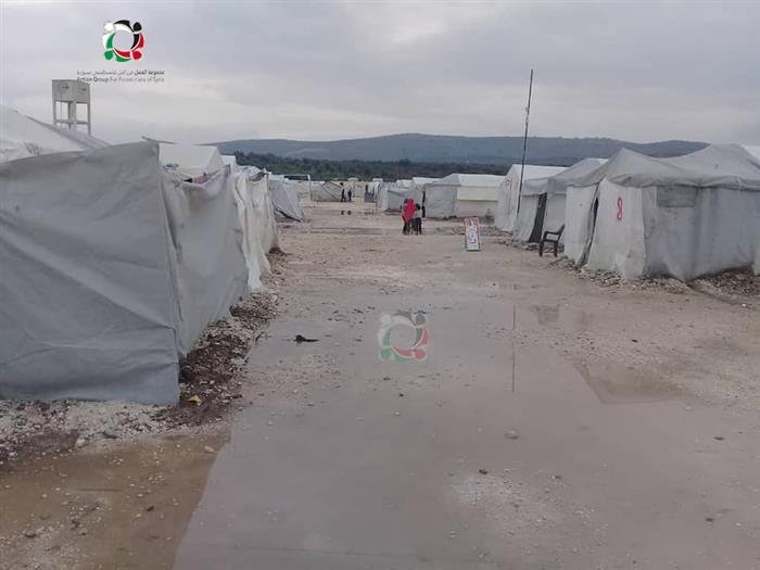 Tents have been flooded with water as torrential downpours have swamped Deir Ballout Camp for Palestinian refugees in Afrin, north of Syria.