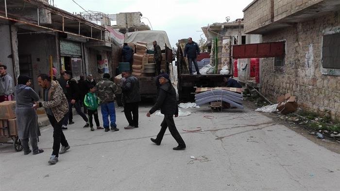 UNRWA handed over in-kind aids to Palestinian refugees in the Aleppo-based Handarat Camp.