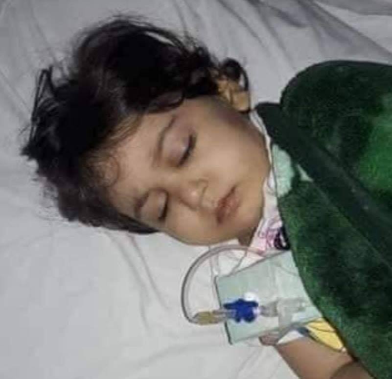 The family of the three-year-old Palestinian child from Syria Maria Abu Azarah, taking shelter in Ein AlHilweh Camp, south of Lebanon, after they were deported from Yarmouk Camp, appealed to all human rights institutions to cover fees for the treatment of their daughter, diagnosed with blood cancer.