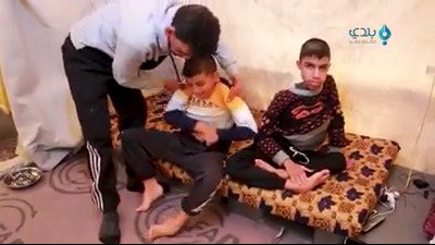 Palestinian refugee Abu Mohamed Esam urged the International Red Cross, the Palestine Liberation Organization, and the Turkish authorities, among other concerned bodies, to work on securing urgent treatment for his two disabled children in Deir Ballout Camp, north of Syria.