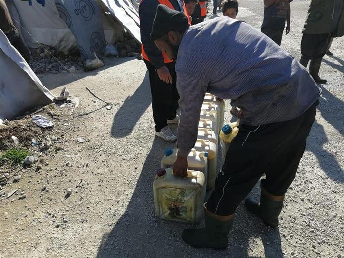 The Commission of Palestinians of Syria for Relief and Development distributed fuel supplies to displaced Palestinian and Syrian families in Deir Ballout Camp, north of Syria.