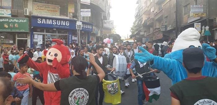 Dozens of Palestinian children joined a carnival staged in Qudsaya, in Rif Dimashq.