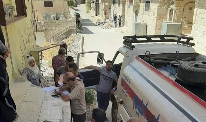 Every registered family reportedly received 100 liters of fuel. The price of fuel set by the Syrian government is 18,000 Syrian Pounds per liter.