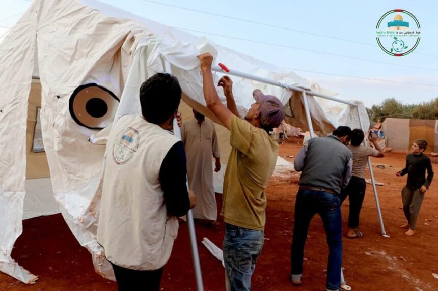 The Palestinian-Syrian Authority for Relief and Development has embarked on a project to install 20 tents in Kalili area, in Idlib’s outskirts, north of Syria. Concrete layers were set up below the installed tents so as to prevent rainwater flooding during winter.