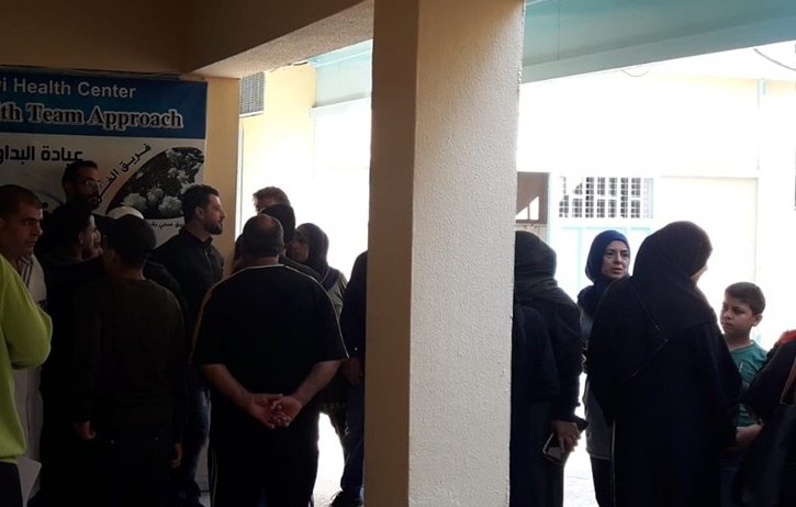 Palestinian refugees gathered at a UNRWA clinic in AlBadawi refugee camp, north of Lebanon, protesting health service cut.