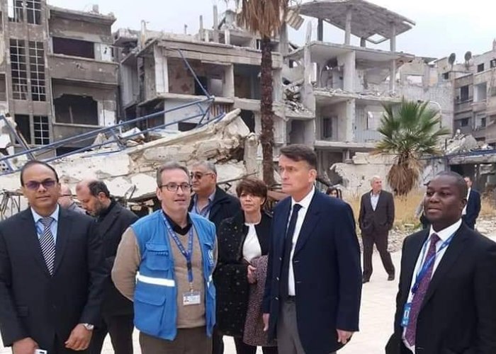 Acting Commissioner-General of the United Nations Works and Relief Agency for Palestine Refugees in the Near East (UNRWA), Christian Saunders, toured Yarmouk camp for Palestinian refugees, south of Damascus.