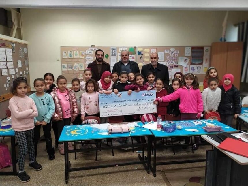 Schoolchildren at AlArkam School, in Nazareth city, in Palestinian territories occupied in 1948, donated a sum of 3,000 USD to children in the northern Syrian province of Idlib and nearby refugee camps.