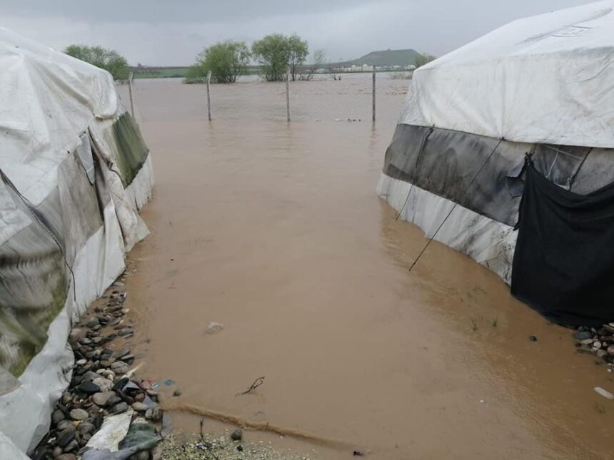Live snapshots show refugee tents being flooded with water as torrential downpours have swamped Palestinian refugee camps in northern Syria.