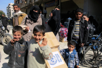 UNRWA distributed some food rations to displaced families…