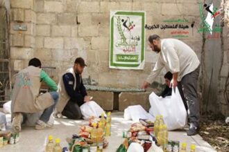 The Charity of Palestine distributes food packages to orphans and injuries in Yarmouk camp.
