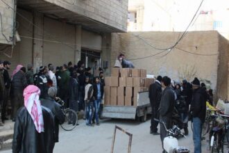 Aid distribution to displaced people of Yarmouk camp.