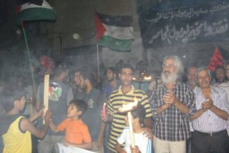 Residents of Yarmouk organized sit-in on Saturday night…