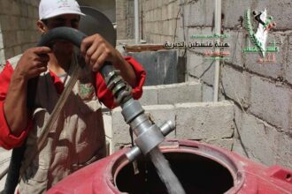 Palestine Charity Committee continues its work to distribute water to the homes of the Yarmouk camp.