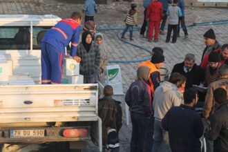 Abroad Palestine Scholars Committee Distributes aids at the Yarmouk Camp.
