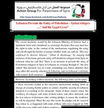 The Action Group for Palestinians of Syria documents a number of violations by the Lebanese authority and calling them to commit to treaties and international laws