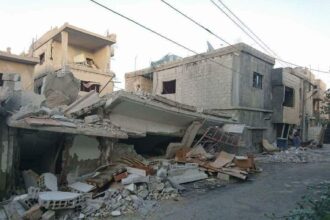 Palestinian refugees taking shelter in Deir Ballout camp…