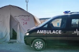 Paramedics at the mobile clinic in Deir Ballout…