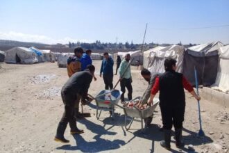 Palestinian Volunteers Engaged in Relief Mission in Deir Ballout Camp