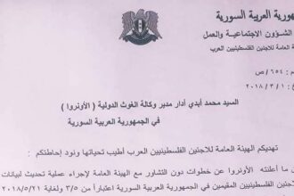 UNRWA imposes “difficult”conditions to update the Palestinian-Syrians’ information and the General Authority for Refugees refuses
