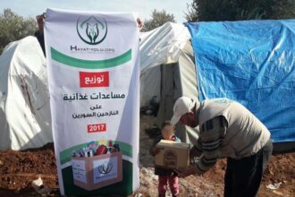 Relief aid distributed to the displaced Syrian families in north of Syria