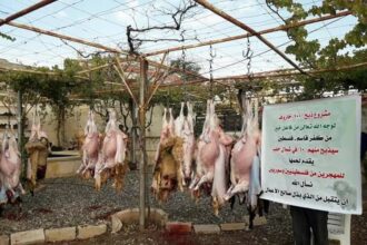Palestinians in Syria Relief and Development Association distributes meat aid in the suburbs of Aleppo